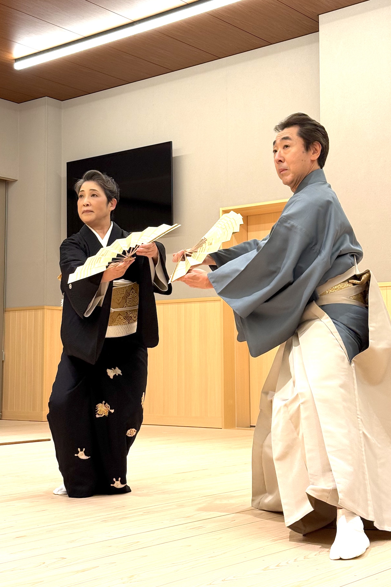 (恵都子)日本舞踊が令和5年に国の重要無形文化財に指定されました。それを機に、私達もますます身の引き締まる思いであります。若手を育てることも大変重要な仕事なんですけれども、私達自身も初心に返って、研鑽しないといけないということで、(この二人会では)和気あいあいとやれるところもあるし、お互いに競い合うところもあります。