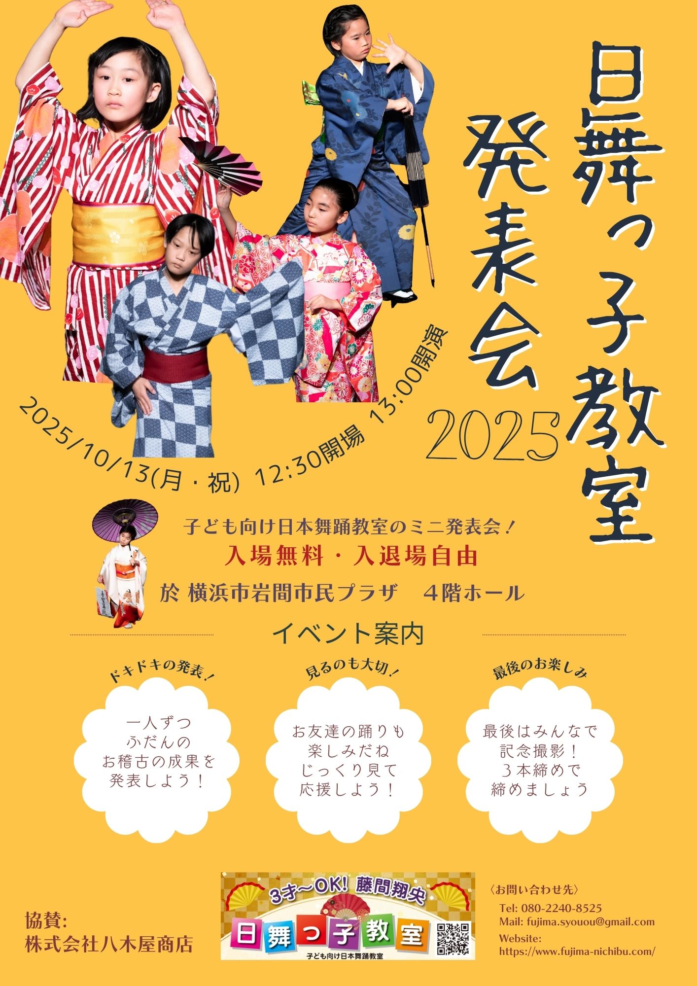 10/13(月・祝)13:00〜 日舞っ子教室 発表会@横浜市岩間市民プラザ