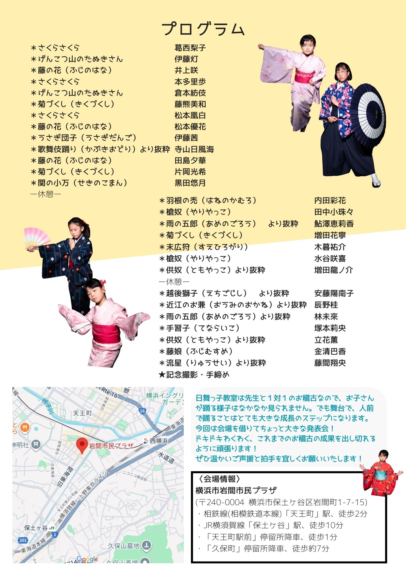 横浜市岩間市民プラザのホールにて、日舞っ子教室の発表会を開催いたします!